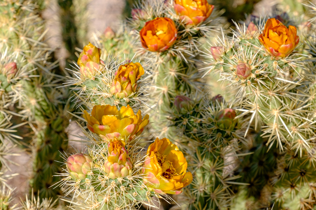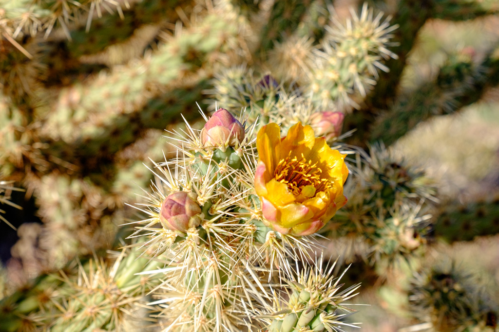 Even the cacti without flowers were beautiful as the sun hit their white needles.