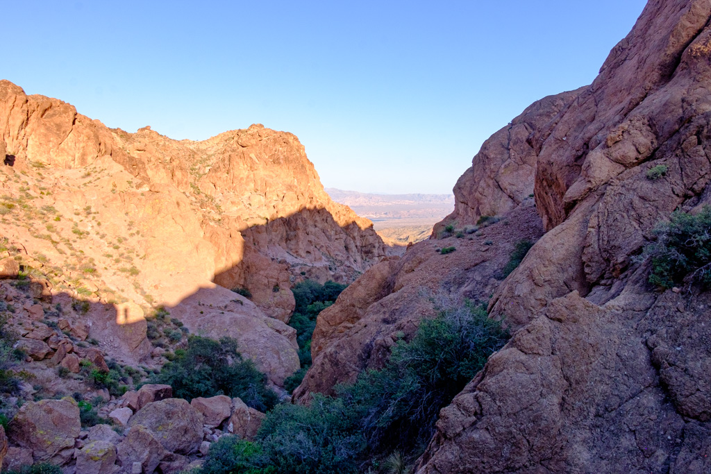 As you start descending closer to the arch, great views open up. At some places you can even see all the way down to Lake Mojave.