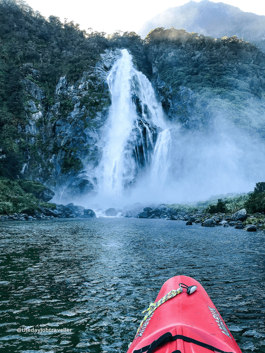 Alicia booked a group kayak tour, as you can see in the image above.  She says she loved the kayak tour because it allowed her to get up close and personal with sea lions.  It also helped her get amazing views of waterfalls like Bowen Falls.  She says another highlight of the kayak tour was stopping for lunch on a beach overlooking the last glacier in Milford Sound.