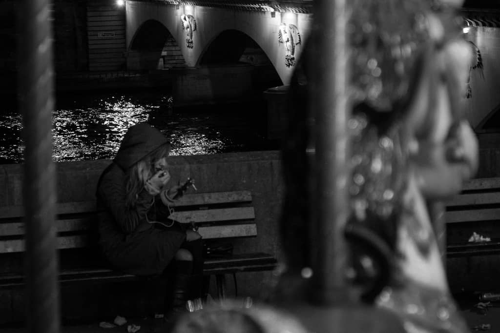 I was riding the carousel across the street from the Eiffel Tower with my girls and I saw this lady smoking on a nearby bench. In post, I brightened her up a little bit so she wouldn’t be lost in shadow.